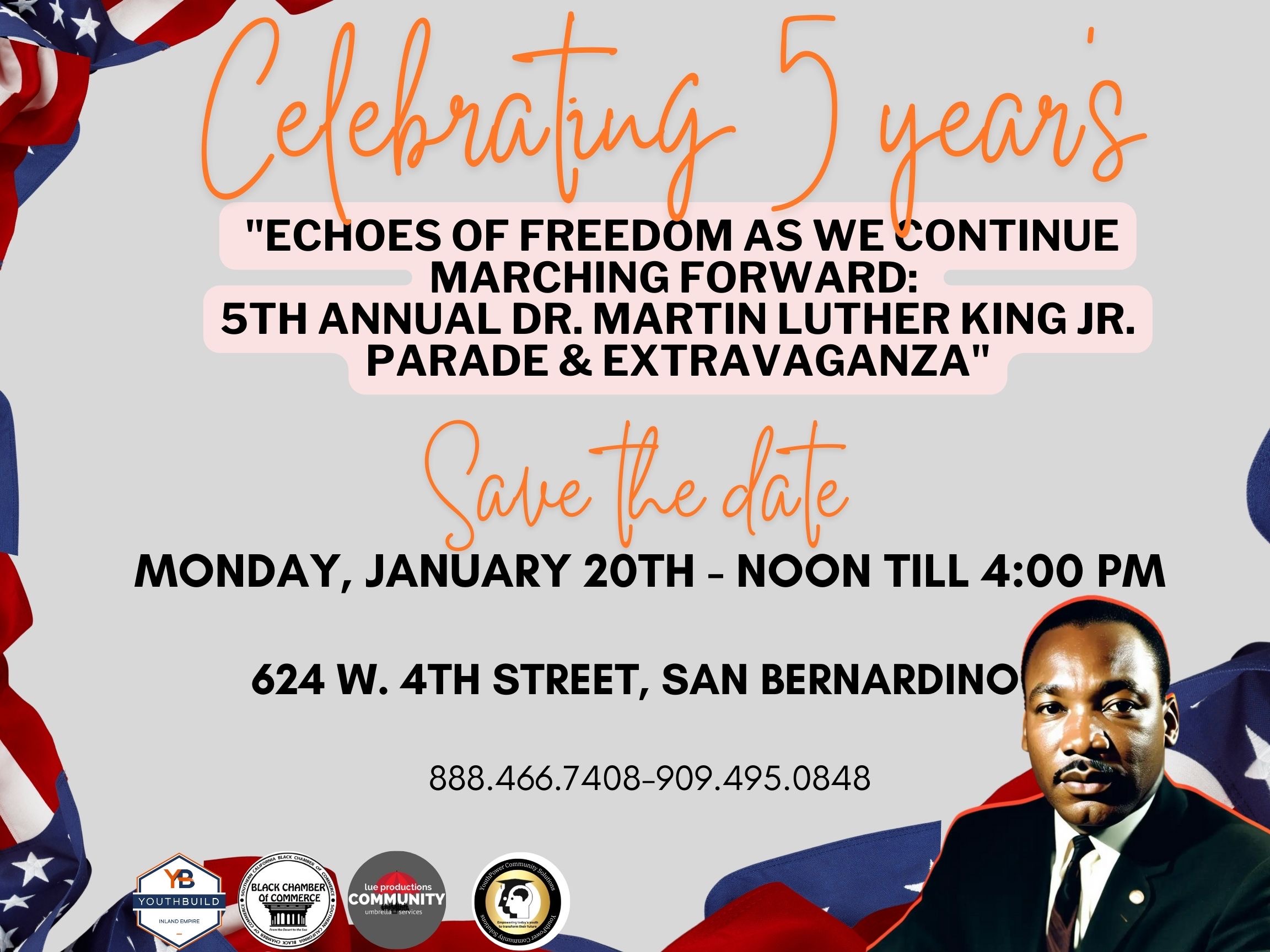 Martin Luther King Parade – San Bernardino, CA 📅 Date: Monday, January 20th, 2025 ⏰ Time: 12:00 PM to 4:00 PM 📍 Location: 624 W 4th Street, San Bernardino, CA...